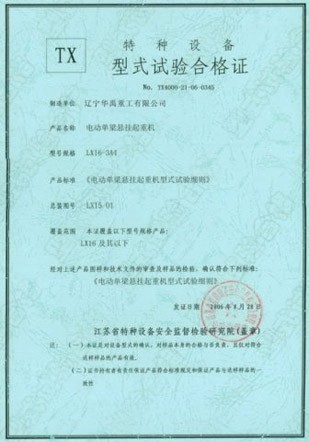 LDP电动单梁型式试验合格证